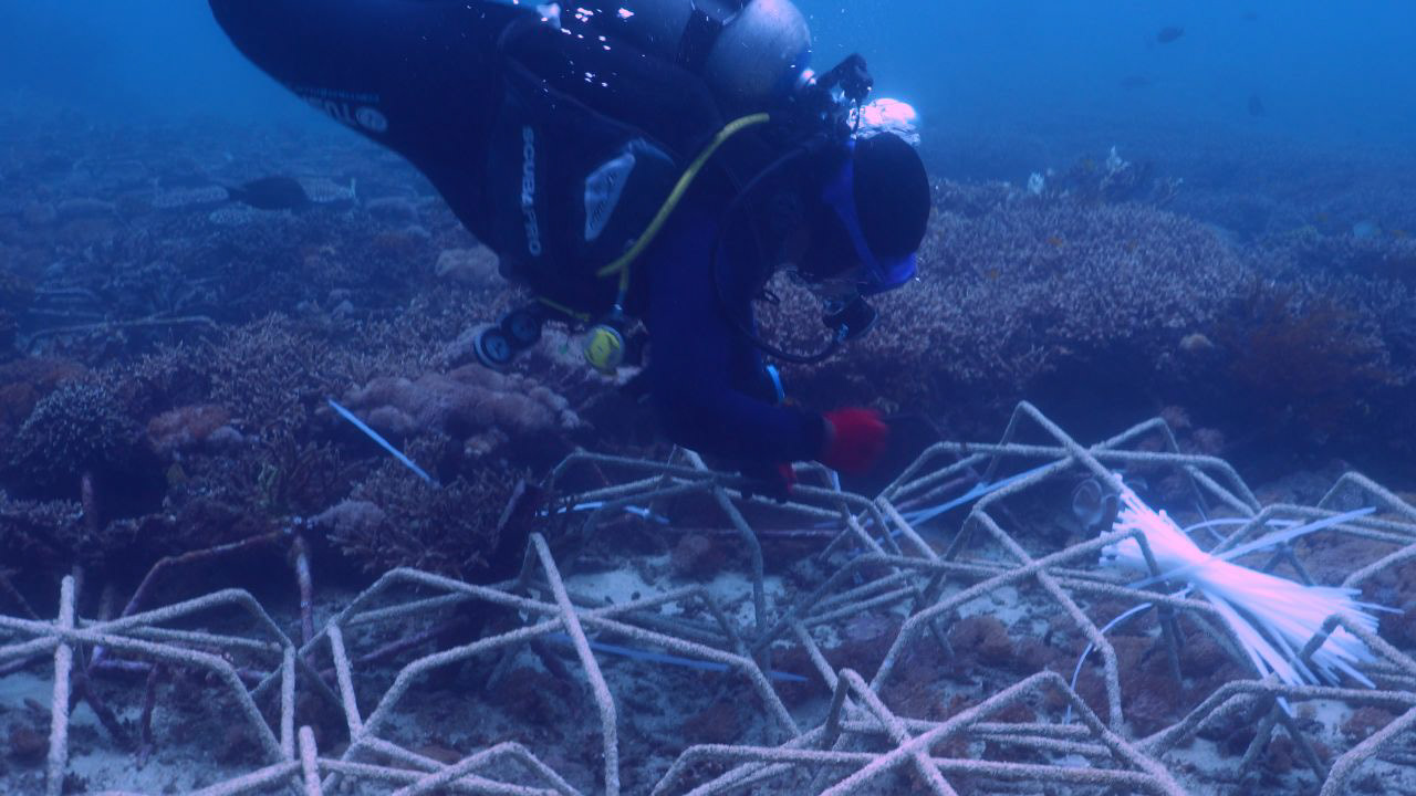In Padangbai, Bali, the organisation works with local coral experts and follows MARS international restoration standards to rebuild damaged reefs, while creating blue jobs for the community.